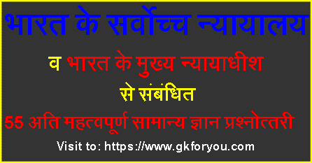 उम्मीद है कि आपने उपरोक्त सभी पांच प्रश्नों का उत्तर सही दिए होंगे, तो अब चलिए पढ़ते हैं Supreme court of india related gk questions with answer के 55 महत्वपूर्ण प्रश्न - उत्तर विवरण सहित :